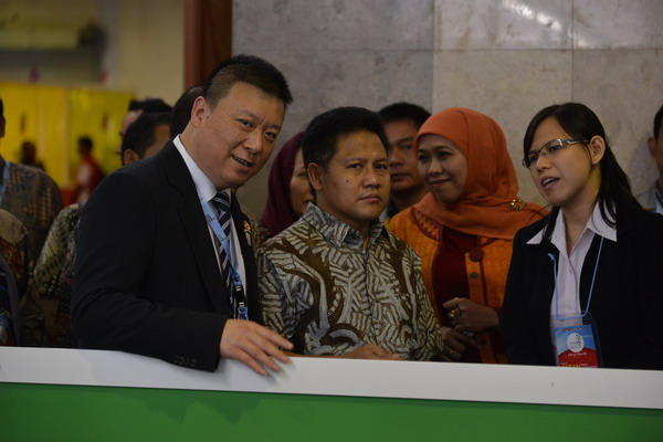 印尼勞工部部長Muhaimin等一行參觀亞龍工業自動化賽項,并了給予了高度評價,并與亞龍董事長陳繼權做了很好的溝通。