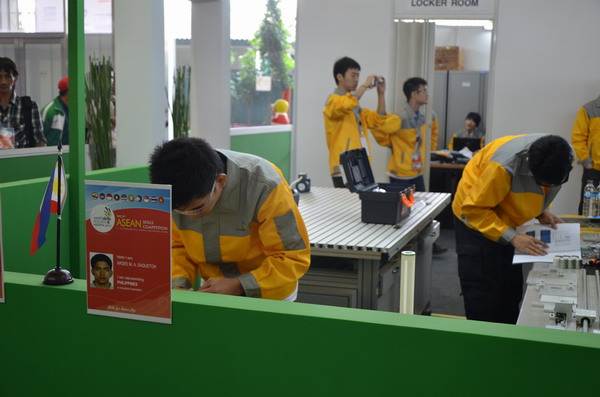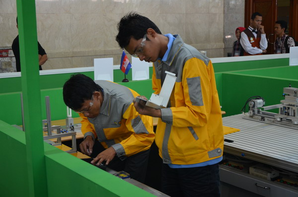 2012年11月15日上午9點整,第九屆東盟技能大賽正式拉開帷幕。由中國亞龍科技集團提供設備支持的工業自動化項目共有來自7個東盟國家的選手參賽。整個賽項為期三天,第一天競賽項目為機械安裝, 經過一天5個小時的激烈緊張的角逐,東道主印度尼西亞隊暫時領先。