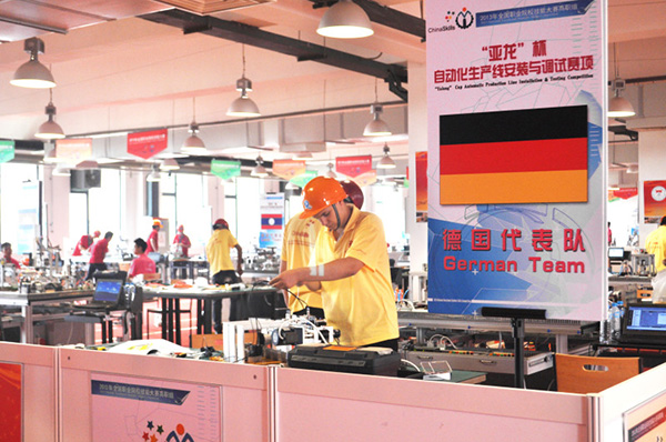 本網訊 2013年6月26-27日,由教育部、天津市人民政府、科學技術部等31個部門主辦,教育部職業教育與成人教育司、天津市教育委員會等4個部門承辦, “2013年全國職業院校技能大賽高職組“亞龍杯”自動化生產線安裝與調試賽項在天津中德職業技術學院舉行的。教育部職業教育與成人教育司、中國·天津海河教育園區管委會、天津市津南區人民政府、機械工業教育發展中心、中德學院、 浙江亞龍教育裝備股份有限公司、天津市外國專家局、天津市人力資源和社會保障局、中國國際人才交流基金會項目開發部、印度尼西亞共和國人力資源部、中國鐵道出版社高職中心等相關事業、企業單位領導,新聞媒體,裁判員,國內外代表隊選手等參加了開賽式。