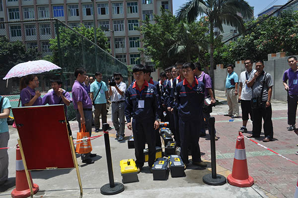 本網訊 6月18日,2013年全國職業院校技能大賽中職組“亞龍杯”電梯維修保養賽在清遠市職業技術學校舉行。來自全國26個省(自治區、直轄市)的31支參賽隊62名選手參賽。國家各部委和省市的相關領導、專家、評委以及知名企業代表近200人現場指導、觀摩。