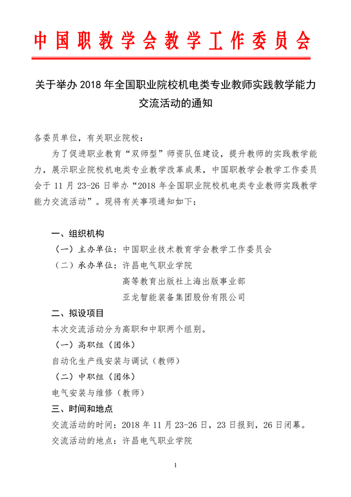 關(guān)于舉辦2018年全國(guó)職業(yè)院校機(jī)電類專業(yè)教師實(shí)踐教學(xué)能力交流活動(dòng)的通知