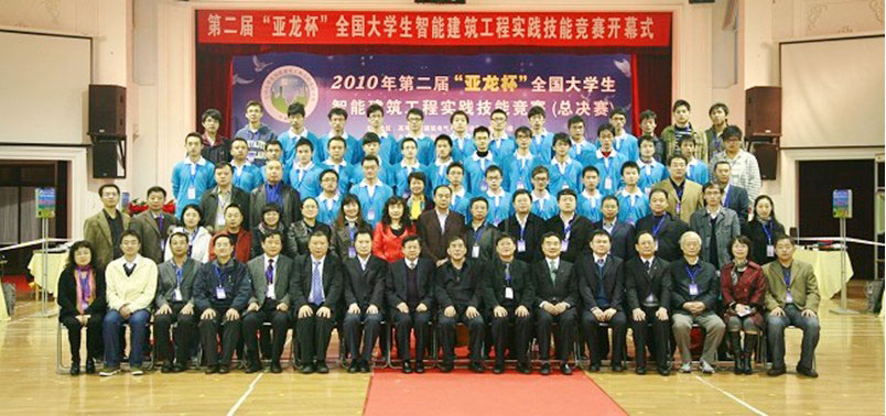 北京建筑工程學院校長鄭文堂首先發表了熱情洋溢的歡迎辭,他代表學校熱烈歡迎來自全國各高校的參賽和觀摩的老師和同學,并預祝大賽成功。他指出,作為國民經濟的支柱性產業,建筑行業長期以來在推動經濟發展和社會進步方面發揮著舉足輕重的作用。隨著經濟發展方式的轉變,以及國家建設節約型城市、生態型城市、數字化城市戰略目標的提出,傳統建筑行業面臨新的挑戰,建筑行業正在發生著革命性變化,“綠色、低碳、環保、生態、低耗”成為建筑行業的新趨勢和新方向。相信“亞龍杯”全國大學生智能建筑工程實踐技能競賽一定能夠不斷增強輻射力和影響力,為同學們拓展想象力、發揮創造力搭建更加廣闊的平臺,為促進學生實踐能力及創新能力的培養做出更大的貢獻。