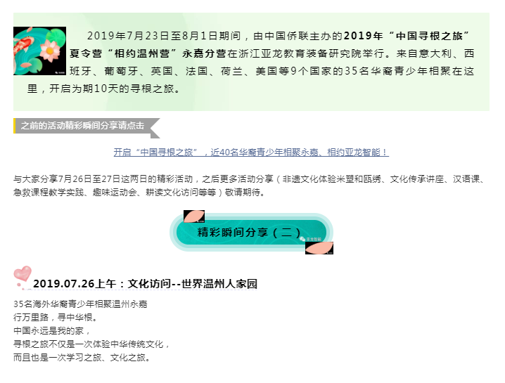 中國永遠是我的家 “中國尋根之旅”相聚永嘉、相約亞龍智能(精彩活動分享二)