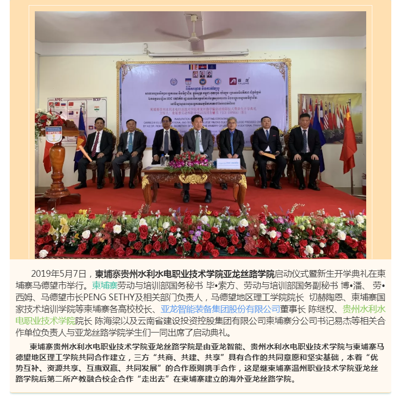 中國高職走出去辦學(xué)新模式 又一所“亞龍絲路學(xué)院”落戶柬埔寨