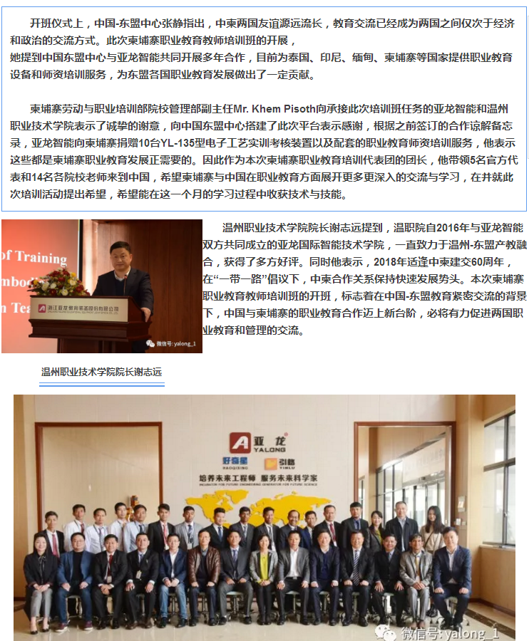 “柬埔寨職業教育教師培訓班”開班儀式在亞龍智能舉行