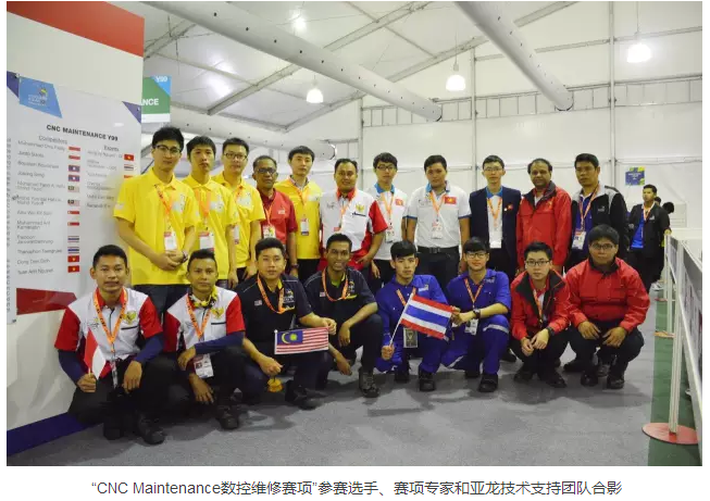 “CNC Maintenance數(shù)控維修賽項”有印度尼西亞、老撾、馬來西亞、新加坡、泰國、越南的國家參賽隊伍,經(jīng)過3天的緊張激烈比賽,在技術(shù)技能方面開展競技,每支參賽隊伍都發(fā)揮優(yōu)秀的職業(yè)素養(yǎng)和職業(yè)技能,觀摩人次達到數(shù)萬。該賽項自2012年起入選東盟技能大賽,現(xiàn)已連續(xù)三屆由亞龍?zhí)峁└傎惼脚_及技術(shù)標準。