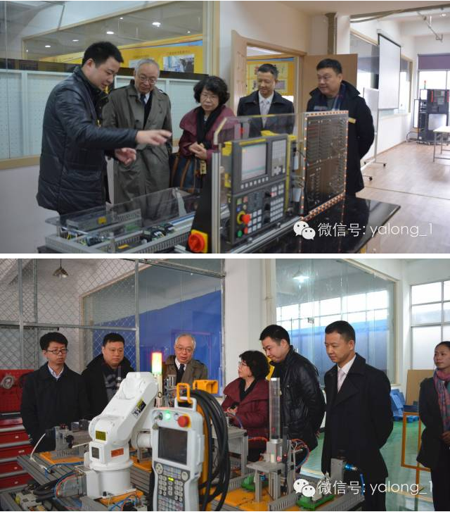 日本FANUC學校平校長一行在參觀了亞龍裝備的FANUC數控系統應用中心之后,又對工業機器人設備區、電梯安裝維修與保養設備區、自動化設備區、亞龍工程技術研究中心、企業文化展廳等進行調研。在了解了全方位、立體化的亞龍裝備職業教育培養培訓模式之后,尤其對于亞龍裝備的硬件設備、軟件開發、培訓課程體系等,日本FANUC學校平校長不斷驚嘆和稱贊。